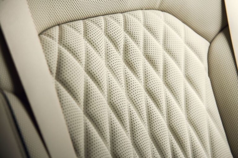 Wnętrze odzwierciedla ethos poziomej architektury, dominowanej przez harmonijny układ poziomych powierzchni, w tym równoległy układ systemu wentylacji oraz elementów sterujących audio, które maksymalizują prostotę i zapewniają intuicyjne doświadczenie użytkownika. Natychmiast zauważalny jest nacisk na materiały premium i wykończenia odpowiednie dla flagowca, w tym autentyczne chromowane wykończenie na przełącznikach i wysokiej jakości skórzane oklejenie konsoli centralnej. Autentyczne drewno o otwartych porach działa jako ozdoba, podobnie jak podwójne szwy i lamówki w całej kabinie.