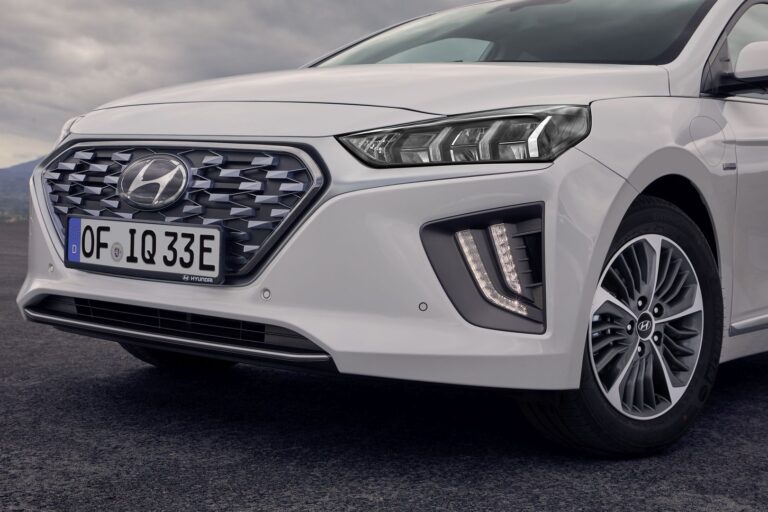 Z przodu, hybrydowe i plug-in wersje nowego IONIQ pokazują teraz przeprojektowaną kratkę chłodnicy w siatce. Przód nowego IONIQ Electric również został zaktualizowany o nowy wyróżniający się wzór na zamkniętej kratce. Wszystkie modele charakteryzują się zaktualizowanym projektem przedniego zderzaka z plastikową osłoną w kolorze srebrnym u dołu oraz nową antracytową osłoną tylną, a także osłonami świateł dziennych z przodu, co tworzy bardziej wyrafinowany i dynamiczny wygląd. Światła dzienne LED oraz nowo dostępne LED-owe reflektory i światła tylne zostały całkowicie przeprojektowane, aby IONIQ wyróżniał się w nocy – oferując nie tylko estetyczne ulepszenia, ale także dodatkowe bezpieczeństwo.