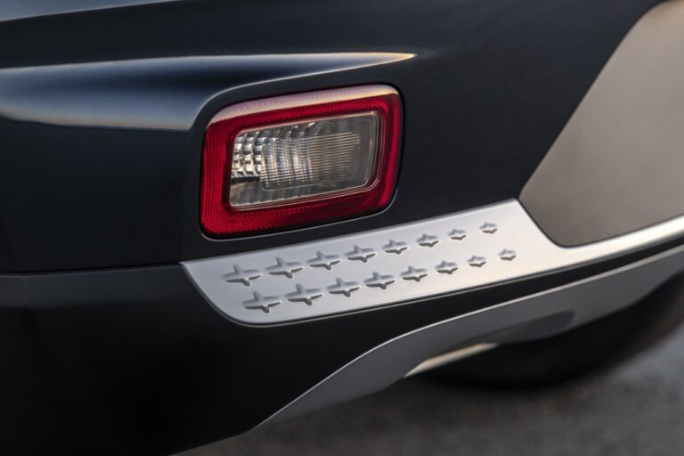Z profilu, wysoka szyba zapewniała wystarczająco miejsca na głowy pasażerów, a dach delikatnie opadał w kierunku tyłu pojazdu. Kanciaste linie samochodu zostały złagodzone przez krzywizny w karoserii nad przednimi i tylnymi kołami, które wzorowane były na innych poważnych pojazdach terenowych. Dodatkowo, z tyłu, pochylona do przodu klapa bagażnika ozdobiona spojlerem na dachu sprawiała, że pojazd wydawał się większy niż w rzeczywistości. Na koniec, z tyłu, producent zamontował zderzak ozdobiony dolną częścią w innym srebrnym wykończeniu, które imitowało osłonę przeciwholową.