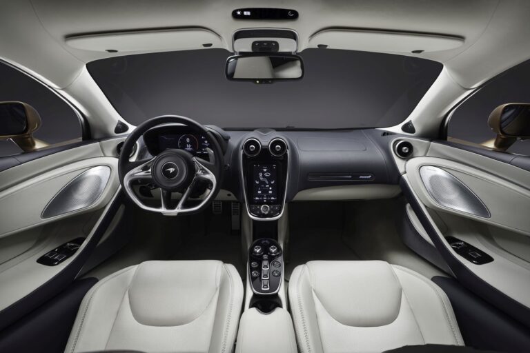 Wnętrze to przestrzeń stworzona z myślą o komforcie podczas długich podróży, ale z wszystkimi niezbędnymi elementami do skupionego, wysokowydajnego prowadzenia; pozycja siedzenia, rozmieszczenie elementów sterujących i widoczność z przodu są tu równie ważne, jak w każdym McLarenie. Smukłe, elektrycznie regulowane i podgrzewane fotele, które są unikalne dla McLarena GT, zostały zaprojektowane z myślą o wymaganiach Grand Touringu, optymalizując komfort na długich dystansach, posiadając idealną ilość wyściółki oraz wsparcia dla ramion i pleców w połączeniu z doskonałą kontrolą boczną.