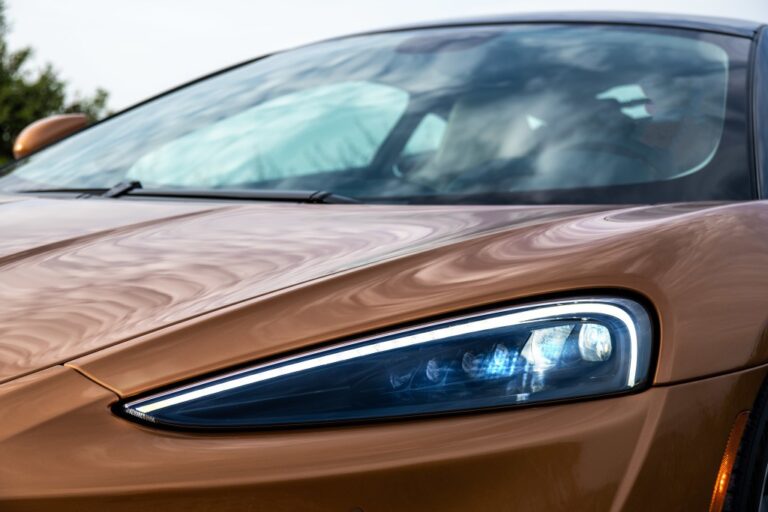 Szerokość i postura nowego McLarena GT są podkreślone z przodu charakterystyczną „linią młotka”, która biegnie poziomo przez nos, prowadząc wzrok na boki pojazdu. Z tyłu zintegrowane stałe skrzydło tylnie, duży dyfuzor i znaczące końcówki układu wydechowego przypominają, że to Grand Tourer o super samochodowej wydajności.