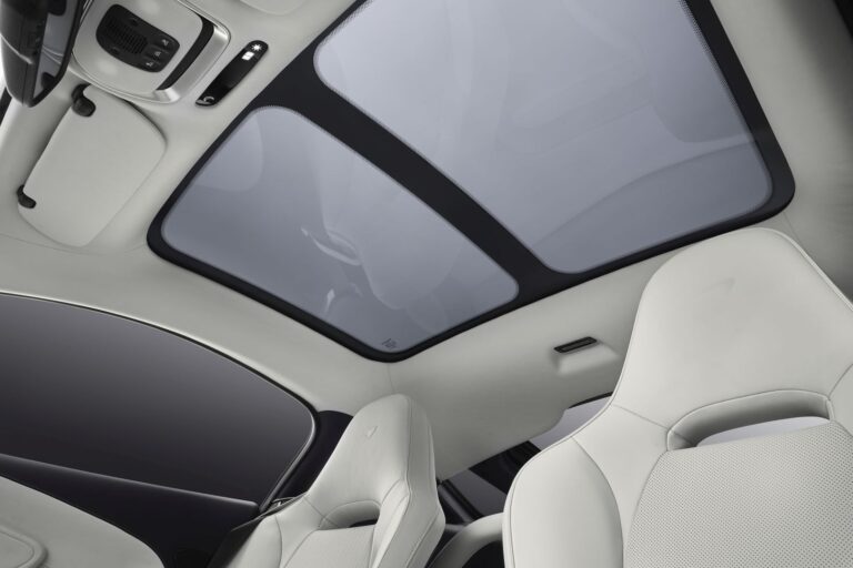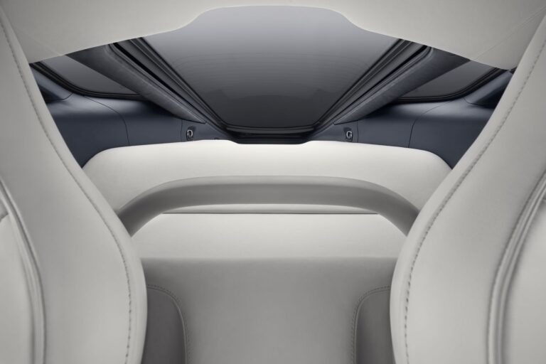 Wytrzymałość struktury z włókna węglowego pozwoliła na wbudowanie przeszklonych słupków C oraz tylnych okien, co poprawia widoczność do tyłu i wprowadza jeszcze więcej światła do przestronnej i uporządkowanej kabiny. Drzwi dihedralowe otwierają się do góry, odsłaniając szerokie wejście i niski próg.