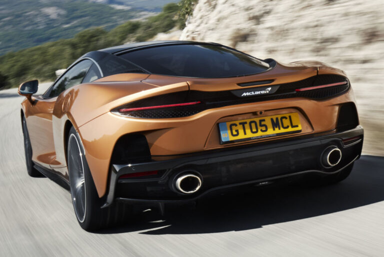 McLaren GT z 2019 roku powstał, aby zdobyć rynek zdominowany przez samochody GT z silnikiem z przodu. McLaren GT ma silnik umieszczony z tyłu oraz napęd na tylne koła, a jego wyposażenie obejmuje 7-biegową skrzynię biegów z podwójnym sprzęgłem. O długości prawie 4,7 metra, McLaren GT jest dłuższy niż jakikolwiek inny pojazd produkowany przez brytyjskiego producenta samochodów. Samochód stoi na 20-calowych lekkich felgach z przodu, które są połączone z 21-calowymi felgami z tyłu.