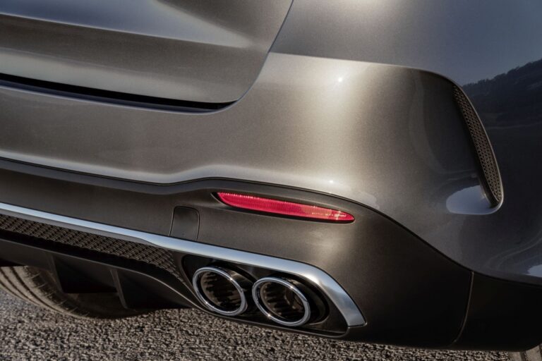 Poziomy chromowane w tylnej części z mocnym zderzakiem oraz specjalny system wydechowy z dwoma chromowanymi podwójnymi końcówkami podkreślają potężny wygląd z tyłu i akcentują szerokość pojazdu. Opcjonalny pakiet AMG Night dodatkowo podkreśla pojazd. Zawiera on okna o podwyższonej odporności na ciepło, ciemnoszare szyby oraz przedni splitter, elementy wykończeniowe w przednim zderzaku i zewnętrznych wlotach powietrza, pokrywy lusterek, ramki okienne, relingi dachowe, dyfuzor i wykończenie końcówek wydechu w wyrafinowanej czerni.