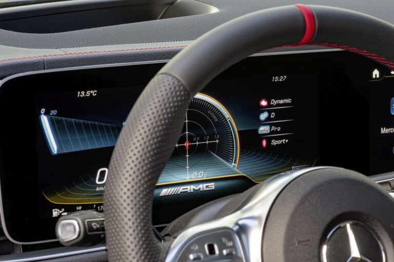 Dzięki opcjonalnemu dodatkowi AMG TRACK PACE, MBUX jest wzbogacony o wirtualnego inżyniera, który umożliwia rejestrowanie i szczegółową analizę do 80 danych specyficznych dla pojazdu oraz czasów na zamkniętych trasach poza obszarem ruchu publicznego. Wiele z tych wartości można wyświetlić w czasie rzeczywistym na szerokim kokpicie lub w opcjonalnym wyświetlaczu przeziernym. Po wykonaniu kilku szybkich okrążeń, kierowca może wykorzystać dane do analizy i, jeśli to konieczne, poprawy swoich umiejętności jazdy. Dodatkowo można zmierzyć i zapisać wartości przyspieszenia i zwolnienia (np. 0-100 km/h, ¼ mili, 100-0 km/h).
