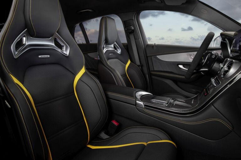 Ale najważniejsze modyfikacje znajdują się pod maską. GLC 63 oferuje potężny silnik V8 z podwójnym doładowaniem o mocy 476 KM, natomiast w wersji GLC 63S dostępne są 510 KM. Przekładnia to AMG MCT 9G, która może być używana w różnych trybach, w tym Sport i Sport+, ale jeśli kierowca chce, można również przełączyć ją na tryb manualny. W takim przypadku na desce rozdzielczej zapali się wskaźnik zmiany biegów, informujący, kiedy jest odpowiedni czas na zwiększenie lub zmniejszenie biegów.