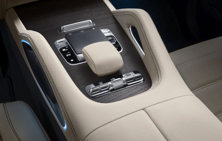 Luksus w nowym GLS jest hojnie dzielony wśród wszystkich pasażerów, szczególnie gdy zamówiony jest Pakiet Komfortu Tylnych Siedzeń Plus. Zawiera on 7-calowy tablet z systemem Android w swoim własnym stacji dokującej w większym luksusowym podłokietniku drugiego rzędu. Tablet umożliwia sterowanie wszystkimi funkcjami komfortu i rozrywki MBUX (patrz kolejna sekcja) z tylnych rzędów siedzeń, takimi jak dostęp do radia, telewizji, mediów, telefonu i przeglądarki internetowej. Może być również używany do kontrolowania pakietu komfortu tylnych siedzeń oraz pięcio-strefowej automatycznej klimatyzacji dla tylnych siedzeń. Oczywiście kierowca może w każdej chwili przejąć kontrolę nad wszystkimi opcjami i funkcjami z miejsca siedzącego.