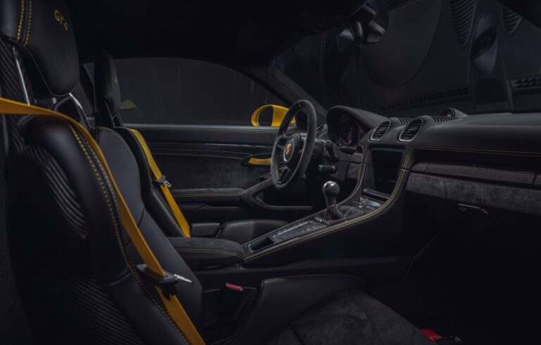 W środku klienci znaleźli sportową atmosferę, w zależności od wybranych opcji. Niezależnie od tych opcji, wszystkie Caymany GT4 wyposażone były w paski do chwytania zamiast klamek, aby zaoszczędzić na wadze. Konsola centralna oferowała klientom tylko kilka przycisków związanych ze sportowym układem wydechowym, kontrolą trakcji i stabilności oraz sztywniejszymi ustawieniami zawieszenia. Jednocześnie kierowca miał przed sobą zestaw wskaźników z trzema tarczami. Klienci mogli również zamówić samochód z elektrycznymi fotelami lub kubełkowymi siedzeniami z włókna węglowego z Alcantary na środku i czarną skórą.