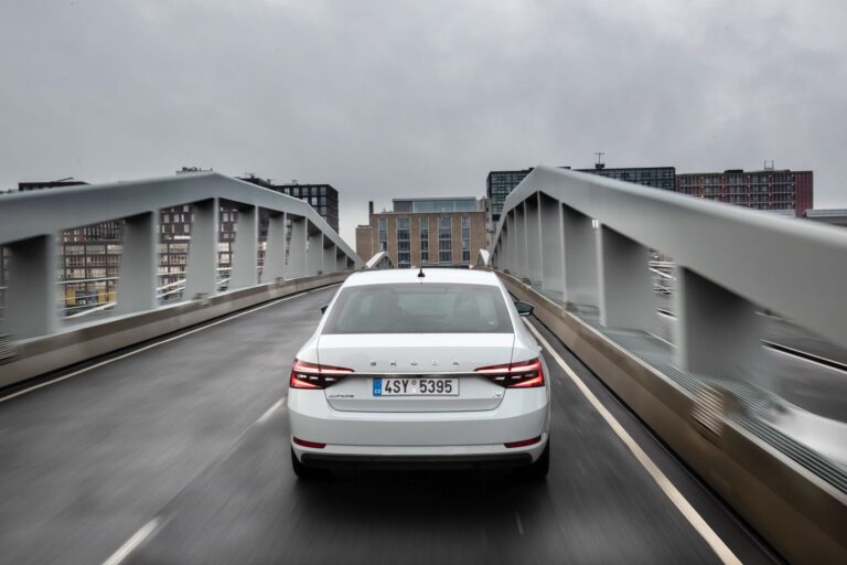 Jednym z technologicznych osiągnięć zaktualizowanego modelu ŠKODA SUPERB są pełne reflektory LED Matrix, które debiutują w produkcji ŠKODY. Ten innowacyjny system generuje wiązkę światła składającą się z kilku segmentów, które są sterowane indywidualnie. Dzięki temu inni uczestnicy ruchu nie są oślepiani, mimo że światła drogowe są włączone przez cały czas. Inteligentna technologia wykorzystuje kamerę na przedniej szybie do wykrywania nadjeżdżających pojazdów, a także osób i obiektów odbijających światło, a jednostka sterująca natychmiast wyłącza poszczególne segmenty wiązki.