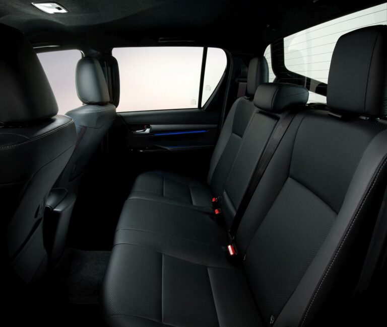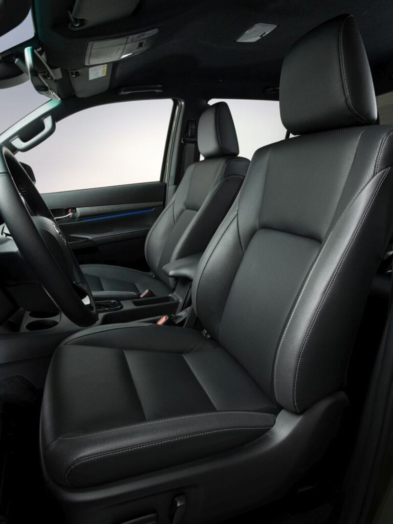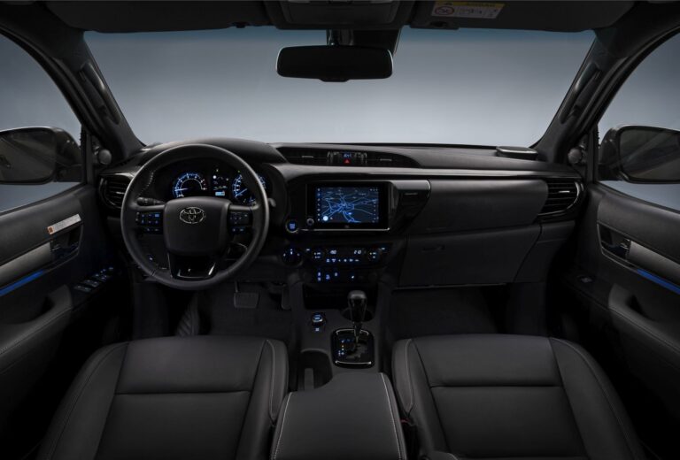 Wewnątrz wersja Invincible rozszerza specyfikację High o ekskluzywny zestaw wskaźników, czarne metaliczne akcenty wykończenia oraz specjalny klucz do inteligentnego dostępu. W wersji Double Cab dodano podświetlenie przednich i tylnych drzwi w kolorze 'clear blue’ oraz perforowane skórzane fotele w dwóch odcieniach, aby zwiększyć atrakcyjność kabiny.