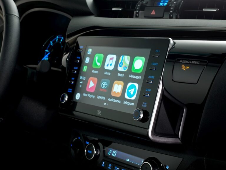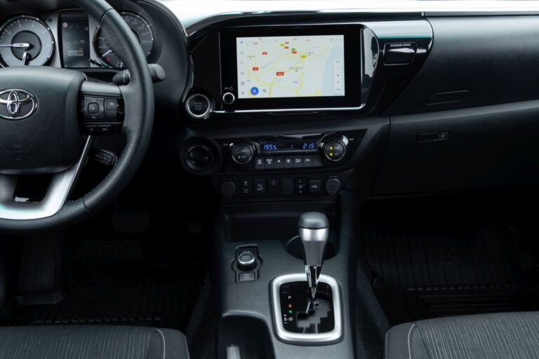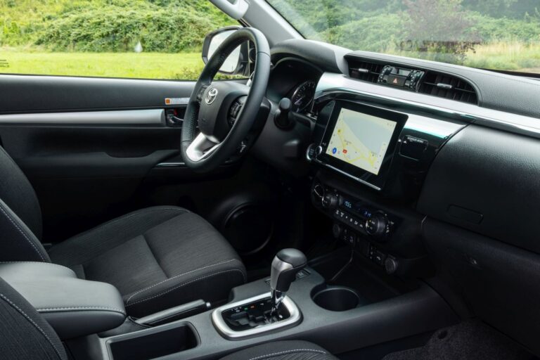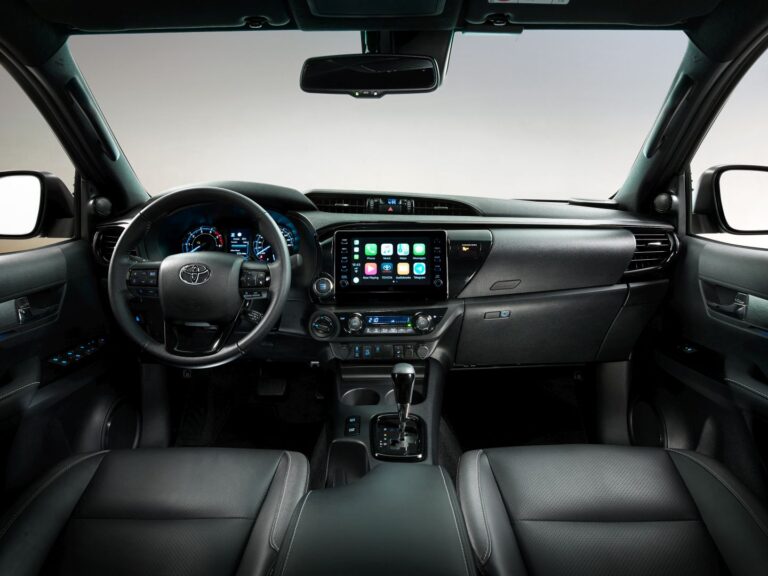 Hilux Double Cab z 2020 roku został wzbogacony o ulepszenia w dziedzinie technologii wewnętrznej. Chociaż ogólny projekt deski rozdzielczej pozostał ten sam, producent zaoferował nowy, ośmiocalowy ekran dotykowy systemu infotainment, który obsługiwał przewodowe Apple CarPlay oraz Android Auto. Dodatkowo, klienci mogli korzystać z zintegrowanej jednostki nawigacyjnej, jeśli nie chcieli używać programów online, takich jak Google Maps. Ponieważ klienci używali Hiluxa jako sportowego pickupa do rekreacji, Toyota oferowała opcję potężnego systemu audio JBL. Skórzana tapicerka była nadal dostępna, podczas gdy modele podstawowe wciąż miały materiałowe siedzenia.