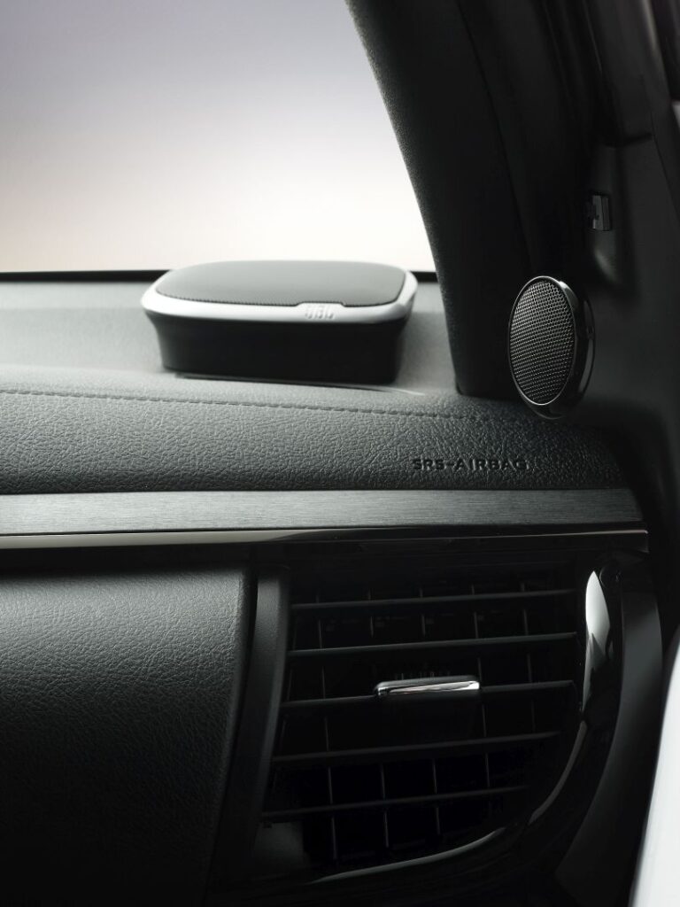 Bogata lista wyposażenia obejmuje inteligentny dostęp, uruchamianie przyciskiem, nawigację satelitarną, automatyczną klimatyzację, czujniki parkowania z przodu i z tyłu oraz 9-głośnikowy system audio JBL Premium, który zawiera 800W wzmacniacz 8-kanałowy oraz technologię CLARi-Fi.