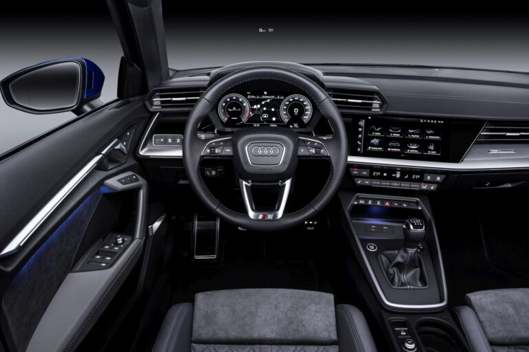Kokpit Audi A3 Sportback koncentruje się całkowicie na kierowcy. Wykorzystuje znane elementy z pełnowymiarowych modeli marki i standardowo wyposażone jest w 10,1-calowy wyświetlacz dotykowy, który jest zintegrowany w centralnej części panelu przyrządów. Rozpoznaje on litery wpisywane ręcznie, zapewnia akustyczny feedback i może być obsługiwany w naturalnym języku. Zestaw wskaźników, którym kierowca steruje za pomocą wielofunkcyjnej kierownicy, również jest standardowo cyfrowy. Audi wirtualny kokpit oferuje dodatkowe funkcje, takie jak duży wyświetlacz mapy nawigacyjnej. Wersja plus ma 12,3 cala i oferuje trzy różne widoki, w tym grafiki o sportowym wyglądzie. Na życzenie można zainstalować wyświetlacz typu head-up, który projekuje ważne informacje na przednią szybę w kolorze.