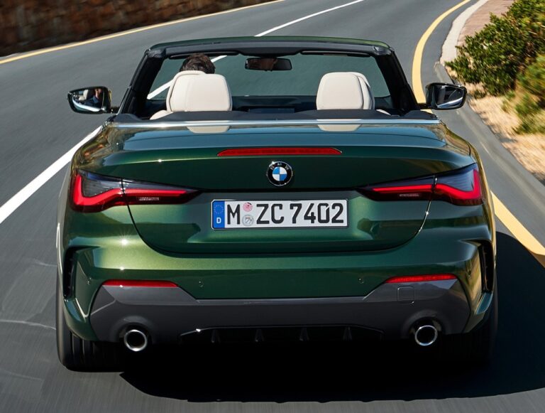 Wyrazisty design samochodu, innowacyjna konstrukcja dachu materiałowego i specyficzne dla modelu proporcje nadają nowemu BMW 4-Series Convertible znacznie bardziej dynamiczny wygląd niż model, który zastępuje, jednocześnie wyraźnie oddzielając go od nowego BMW 3-Series Sedan w zakresie tożsamości ogólnej. Ma długą rozstaw osi i tylni rozstaw jest o 23 milimetry szerszy niż 3-Series Sedan, co tworzy idealny przepis na zrównoważenie najwyższego komfortu jazdy z doskonałą dynamiką zakrętów.