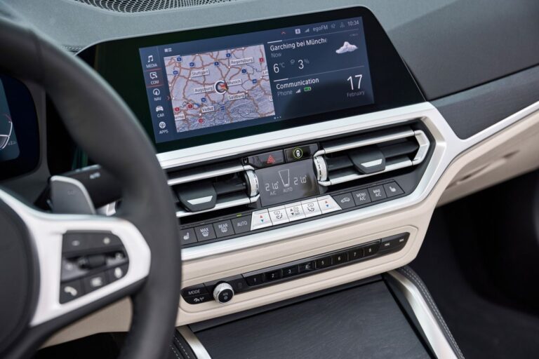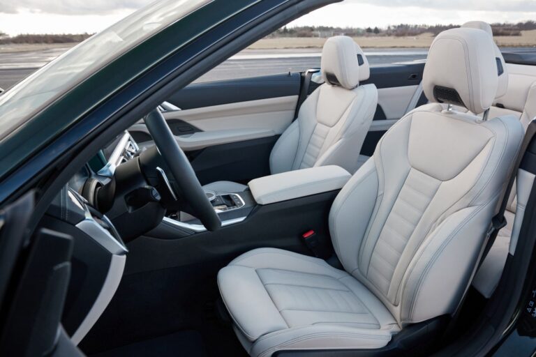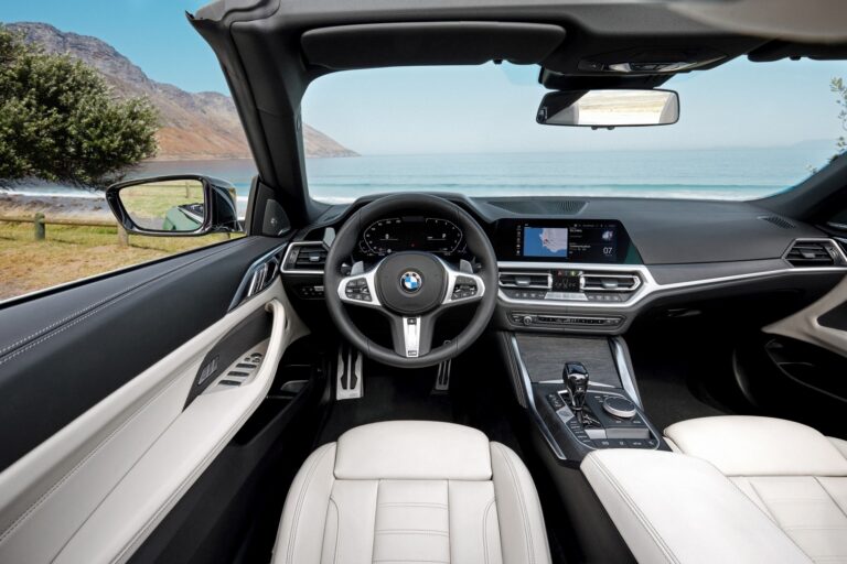 Połączenie sportowości i elegancji, które charakteryzuje nowy BMW 4-Series Convertible, przenosi się również do kabiny. Zorientowany na kierowcę design kokpitu dodatkowo wzbogacono dużą grupą ekranów deski rozdzielczej i wyświetlacza kontrolnego. Wraz z ergonomicznie zoptymalizowanym układem przycisków, pomaga to skoncentrować uwagę kierowcy na drodze przed nim. W standardowym wyposażeniu znajdują się sportowe siedzenia z przodu z ergonomicznie zaprojektowanymi podajnikami pasów, które ułatwiają kierowcy i pasażerowi z przodu zapięcie pasów bezpieczeństwa. Wysoko umieszczona konsola centralna łączy się z harmonijnie dobranym wykończeniem powierzchni deski rozdzielczej i tapicerki drzwi, tworząc otoczenie sprzyjające komfortowi dla pasażerów z przodu. W BMW M440i xDrive Convertible, BMW M440d xDrive Convertible oraz w opcji modelu M Sport, zewnętrzne krawędzie konsoli centralnej mają poduszki na kolana, zachęcające do sportowego stylu jazdy.