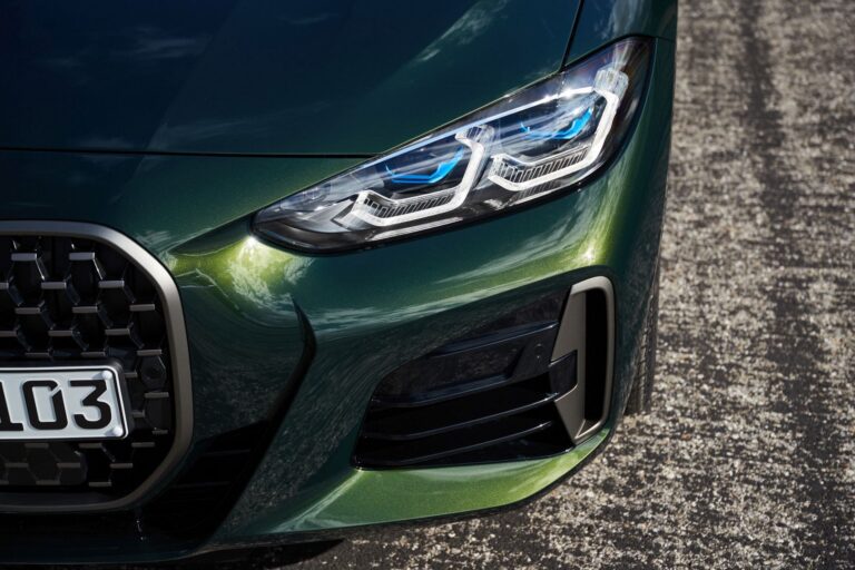 Na liście opcji nowego BMW 4-Series Convertible znajdują się adaptacyjne reflektory LED z BMW Laserlight, w tym asystent dalekiego światła BMW Selective Beam, który nie oślepia. Tutaj zarówno światło drogowe, jak i mijania są generowane z zewnętrznych i wewnętrznych źródeł światła reflektorów. To wyposażenie zawiera również światła do skrętu oraz funkcje adaptacyjnego oświetlenia z zmiennym oświetleniem drogi, optymalizowanym do jazdy w mieście i na autostradzie. Przy prędkościach powyżej 60 km/h (37 mph), BMW Laserlight zwiększa zasięg świateł drogowych do maksymalnie 550 metrów, podążając dynamicznie za zakrętem drogi. Trójwymiarowe heksagonalne światłowodowe przewody świetlne dostarczają światła do jazdy dziennej. Każdy z zewnętrznych elementów światła do jazdy dziennej pełni również funkcję kierunkowskazu.