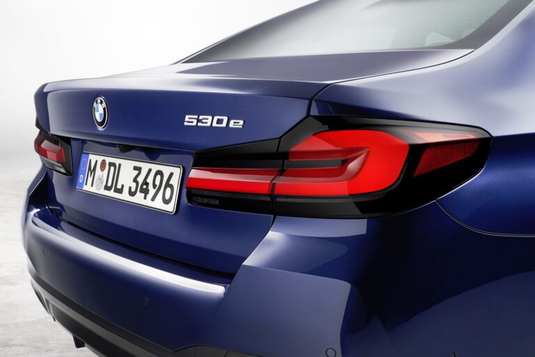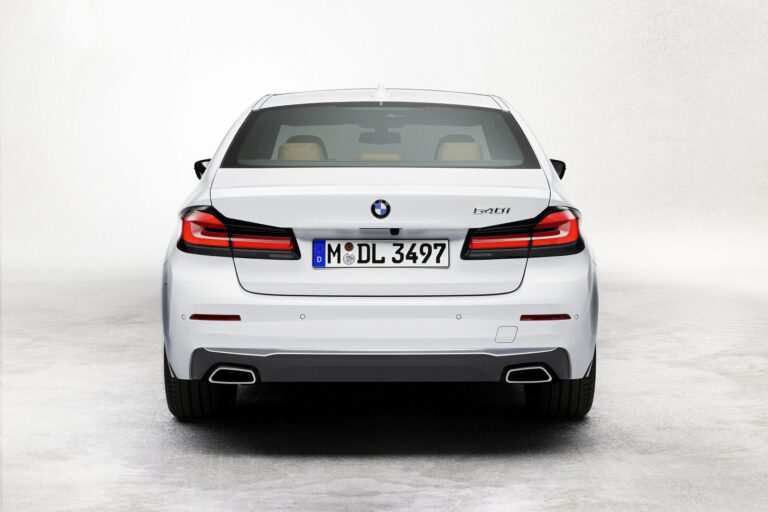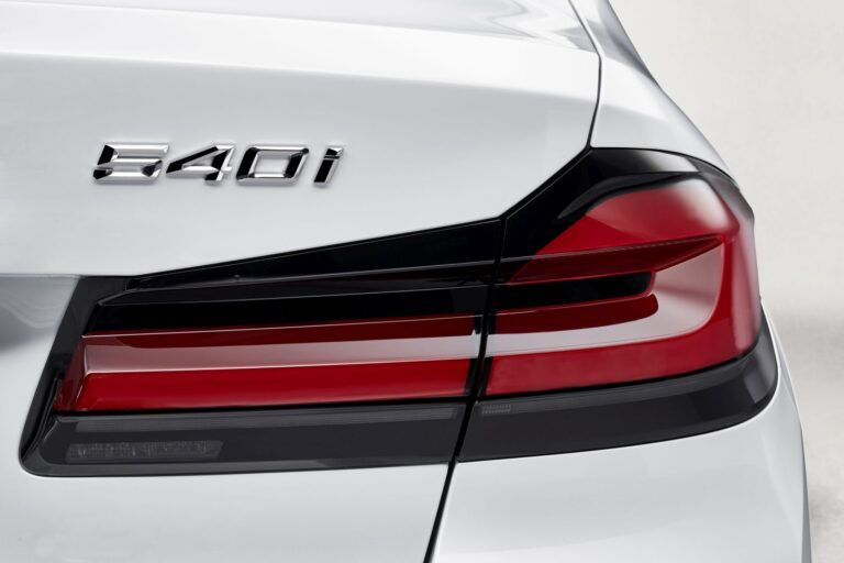 Nowa grafika świetlna w kształcie L nadaje BMW 5-Series wyraźną tożsamość. Czarne wykończenie nadaje tylnym światłom smuklejszy wygląd. Tylne światła i światła hamowania są zintegrowane w jednej lampie. Przesunięcie w zewnętrznej krawędzi górnej części grafiki przynosi świeżą interpretację znanego kształtu L BMW. Wyraźnie trójwymiarowa zewnętrzna soczewka teraz bezpośrednio mieści lampę, tworząc ikoniczną ekspozycję dla głównych funkcji świetlnych.