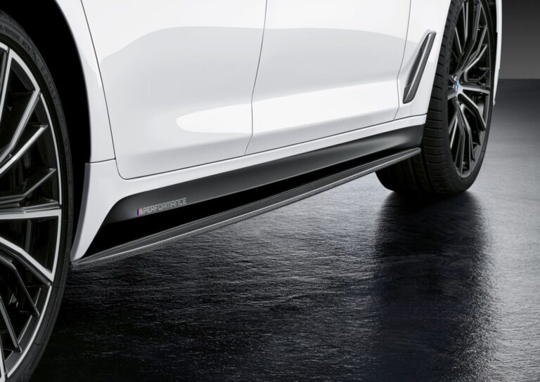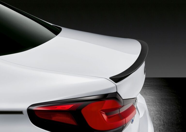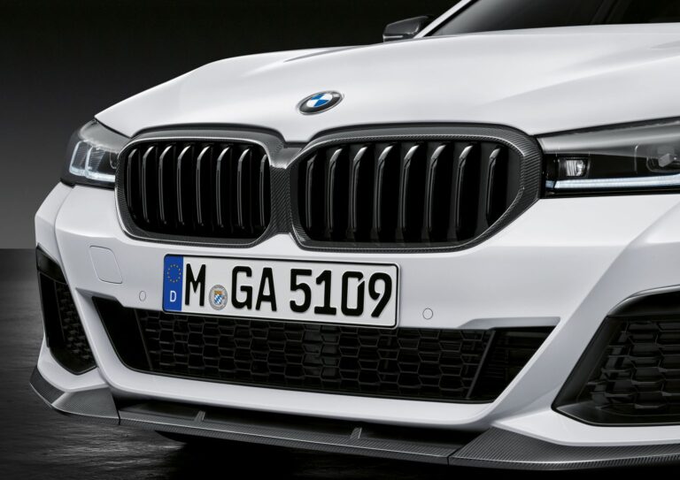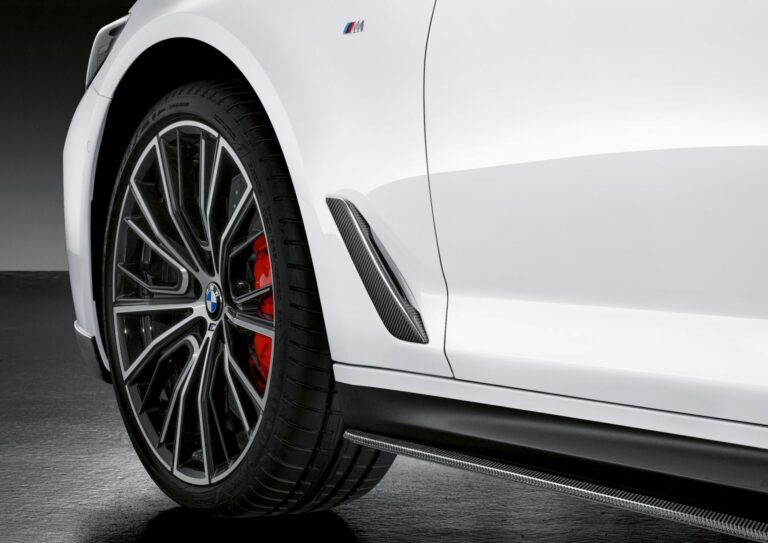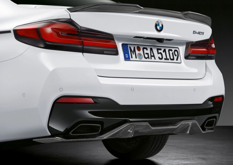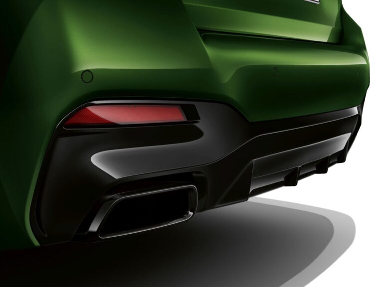 Nowo opracowany pakiet M Sport wyróżnia się nowymi, dynamicznie proporcjonalnymi cechami aerodynamicznymi. Obejmuje to zupełnie nowy przedni zderzak, którego powierzchnie są podzielone przez strukturę w kształcie U skierowaną w stronę drogi. Kratki znacznie powiększonych wlotów powietrza mają teraz nowoczesną strukturę siatki. Listwy atrapy chłodnicy BMW mają matowe wykończenie aluminiowe. Jeśli zamówiony zostanie BMW Individual High-gloss Shadow Line z rozszerzonymi funkcjami, listwy są pomalowane na czarno, a końcówki wydechu mają wykończenie w czarnym chromie. Nowy element dyfuzora w tylnej części zderzaka wykorzystuje bardziej wyraźne kontury do optymalizacji przepływu powietrza.