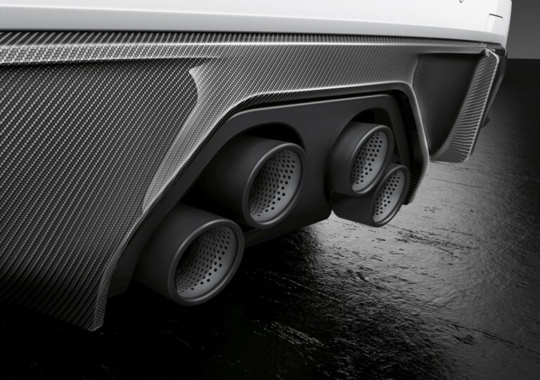 Sportowy charakter sześciocylindrowego silnika w układzie rzędowym wzmacnia system wydechowy dostosowany do modelu. Z optymalnym ułożeniem rur i dużymi średnicami, system wydechowy o podwójnym przepływie redukuje ciśnienie wsteczne i generuje znaczące emocje dźwiękowe. Prowadzi do wysokowydajnego tylniego tłumika, z którego spaliny wydobywają się – w typowym stylu BMW M – przez kwartet końcówek wydechowych. Pary podwójnych rur wystające z tylnego zderzaka są wykończone w chromie w nowym BMW M3 Sedan i nowym BMW M4 Coupé – lub w czarnym chromie w modelach Competition.