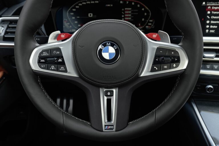 Elektronicznie kontrolowane amortyzatory w adaptacyjnym zawieszeniu M – w standardzie w wszystkich wariantach nowego BMW M3 Sedan i nowego BMW M4 Coupé – optymalizują kontakt z drogą i przyczepność w każdej sytuacji. Jednostka sterująca systemu nieustannie monitoruje ruchy nadwozia, stan drogi oraz dostosowania kierownicy. Elektromagnetycznie sterowane zawory działają w zaledwie kilka milisekund, aby wygenerować wymagane siły tłumienia – w sposób nieskończony i dla każdego koła. Optymalna kontrola nad nadwoziem i montaż, a także w kompleksowy sposób odtłumione wibracje kół zapewniają wysoki komfort także podczas dłuższych podróży.
