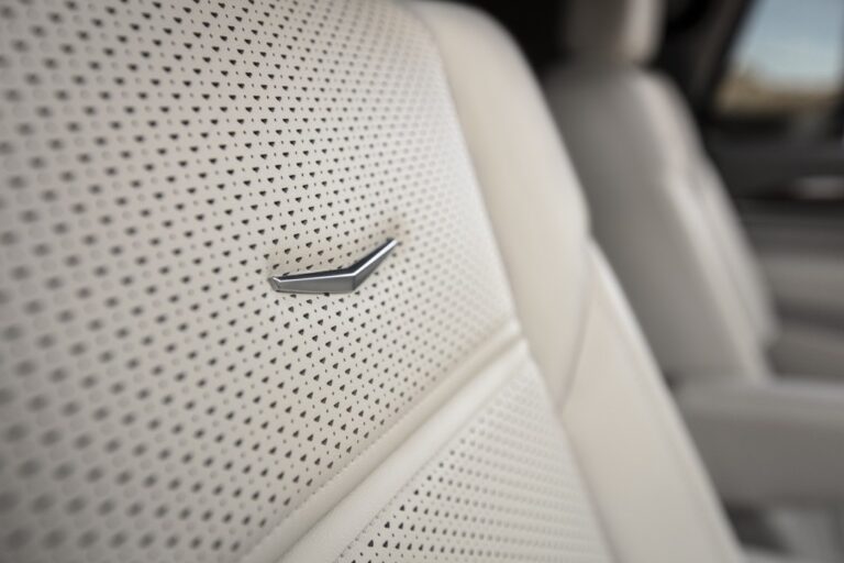Nowy design wnętrza Cadillaca Escalade jest silnie inspirowany koncepcyjnym pojazdem Escala – designem, który również zadebiutował z wyświetlaczem OLED – i wprowadza nową jakość dzięki połączeniu wykończenia Gideon Whisper Beige. To dostępne wnętrze wysokiej wydajności i mody skoncentrowane jest na tkaninie ręcznie tkanej, która wnosi nowy poziom stylu i atmosfery do kabiny Escalade.