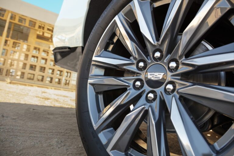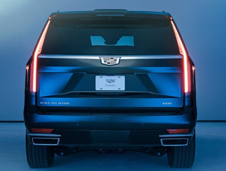 Escalade zachowuje charakterystyczny pionowy element oświetleniowy Cadillaca, ale nowa interpretacja dodaje smukłe, poziome reflektory, aby wzmocnić szeroką, pewną postawę. Wysokie, pionowe światła tylnie pozostają, ale zyskują głębokie, trójwymiarowe warstwy i szczegółowe grawerunki. Standardowe koła mają średnicę 22 cali i wzmacniają odważny wygląd Escalade.