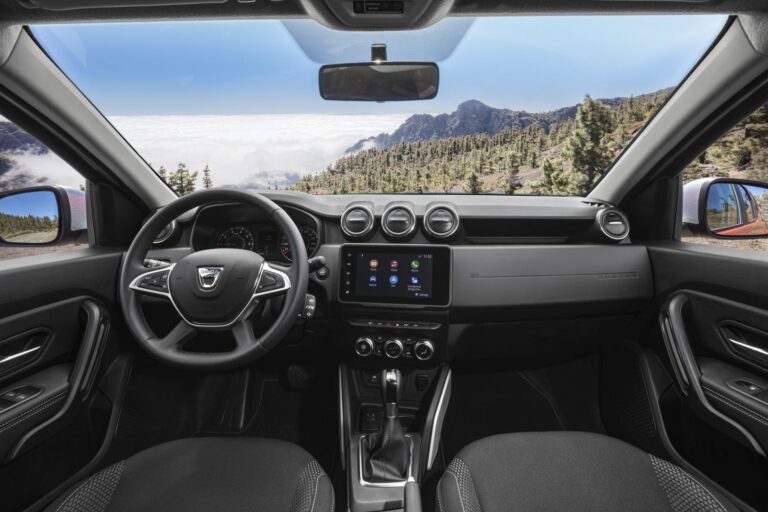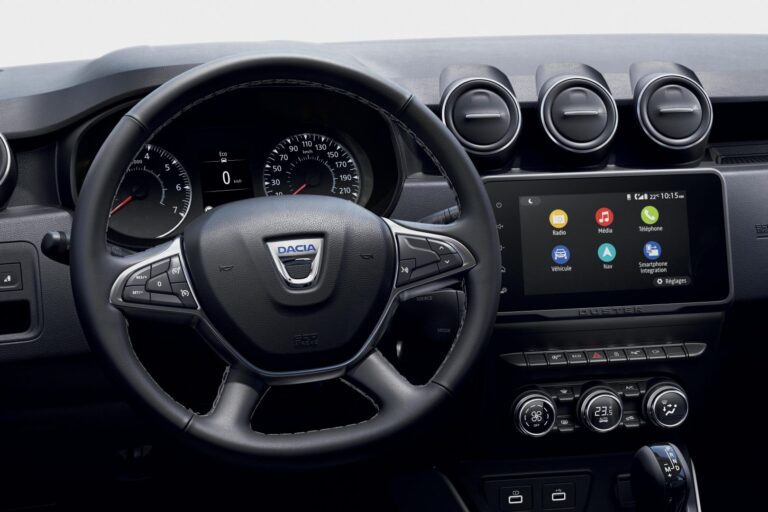 Wewnątrz znajduje się wysoka konsola centralna z chowanym podłokietnikiem, dwa systemy multimedialne z nowym 8-calowym wyświetlaczem oraz automatyczna skrzynia biegów EDC z podwójnym sprzęgłem. Nowy Duster jest tak samo wszechstronny w prowadzeniu jak wcześniej, dostępny jest w wersjach 2WD i 4WD. Najnowsza wersja oferuje wzbogacony system 4×4 Monitor.