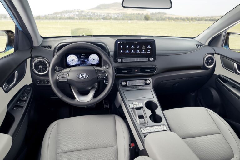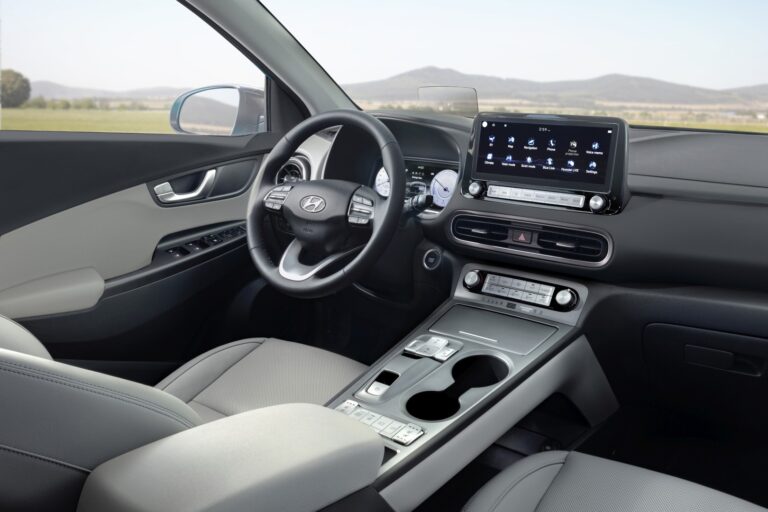 Po raz pierwszy nowy Hyundai Kona Electric jest wyposażony w 10,25-calowy cyfrowy zestaw wskaźników, a opcjonalny 10,25-calowy ekran AVN pochodzi z ostatniej aktualizacji. Jednostka AVN obejmuje funkcje multimedialne i wygodę, w tym Bluelink®, Hyundai LIVE Services oraz Apple CarPlay i Android Auto, co jeszcze bardziej demokratyzuje zaawansowane połączenie dla kierowców Hyundai. Klienci, którzy wybiorą system Display Audio o przekątnej ośmiu cali, mogą bezprzewodowo podłączyć swoje smartfony do Apple CarPlay i Android Auto.