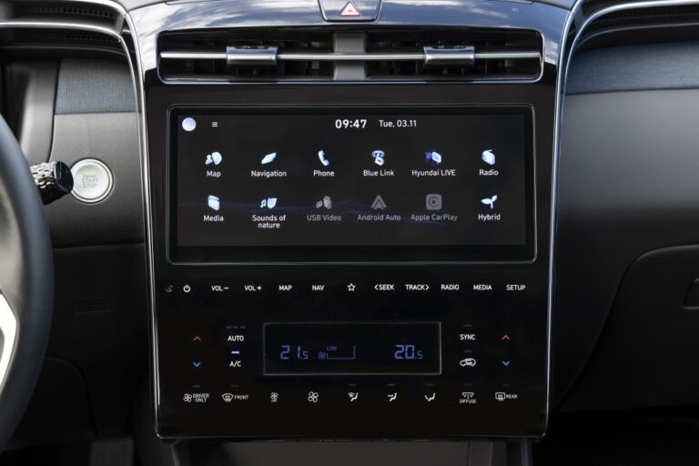 Hyundai oferuje najnowszą wersję swoich nowoczesnych usług połączeń Bluelink z 10,25-calowym systemem infotainment w nowym Tucsona. Ulepszony Bluelink oferuje szereg nowych korzyści i usług dla klientów Hyundai, w tym Connected Routing, Last Mile Navigation i nową funkcję profilu użytkownika. Klienci mogą zlokalizować swój pojazd, zablokować i odblokować go zdalnie lub sprawdzić atrybuty pojazdu, takie jak poziom paliwa, za pośrednictwem aplikacji Bluelink.