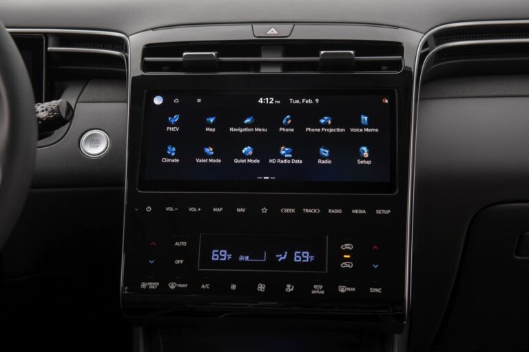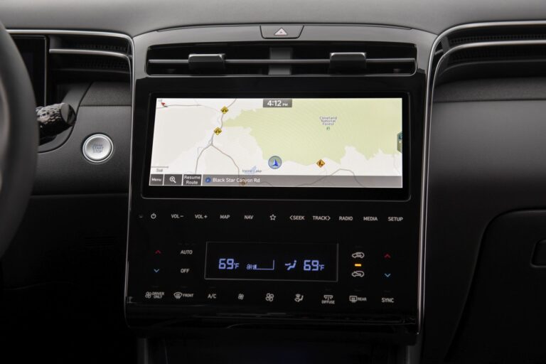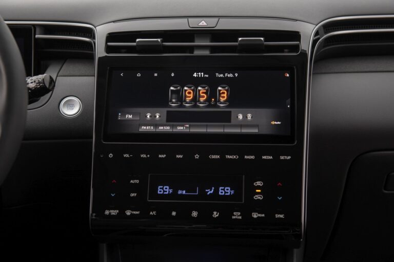 Zdalne uruchamianie z podgrzewanymi i wentylowanymi siedzeniami – Zdalne uruchamianie wykorzystuje połączenie danych komórkowych za pośrednictwem aplikacji Blue Link, umożliwiając właścicielowi zdalne podgrzewanie lub chłodzenie Tucson. Ta funkcja zdalnego ogrzewania i chłodzenia obejmuje ogrzewanie i wentylację dla przednich siedzeń.