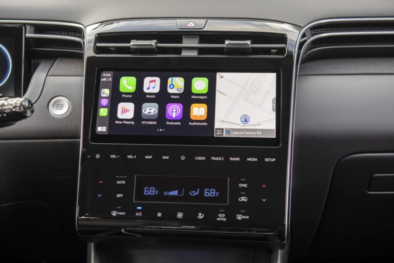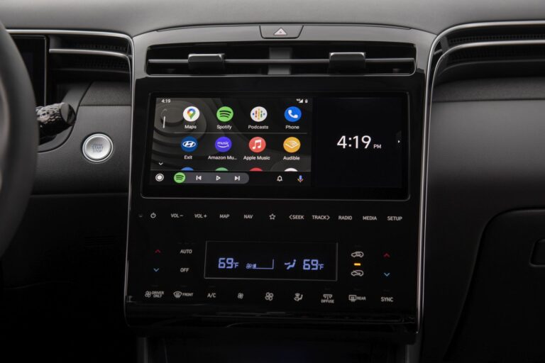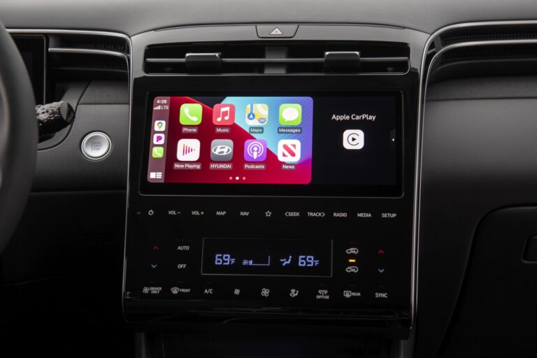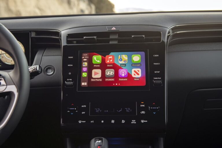 Bezprzewodowy Android Auto® i Apple CarPlay® – Tucson oferuje teraz ośmiocalowy kolorowy ekran dotykowy połączony z bezprzewodowym Apple CarPlay® i Android Auto®, co ułatwia pozostawanie w kontakcie. Bezprzewodowe parowanie automatycznie łączy telefon z systemem Android lub Apple, dzięki czemu kierowca może trzymać telefon w kieszeni, plecaku lub torebce. Właściciele mogą również wygodnie umieścić go na dostępnym ładowarce bezprzewodowej Qi.