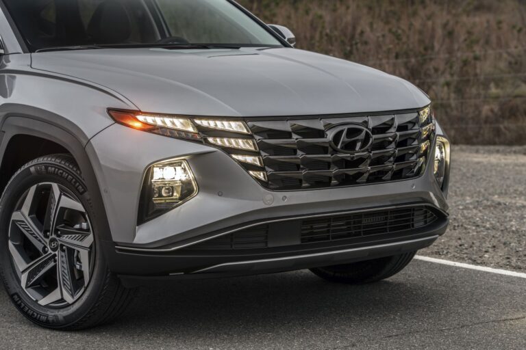 Tucson 2022 bardziej przypominał SUV-a coupe niż zwykłego, kompaktowego crossovera. Jego ogromny grill z przodu miał 3D-design, a reflektory wyglądały jak te z niektórych samochodów koncepcyjnych. Jednak to był model produkcyjny. Z przodu zderzaka znajdowały się dwa szerokie wloty powietrza po bokach oraz mniejszy grill na dolnej części aprona.