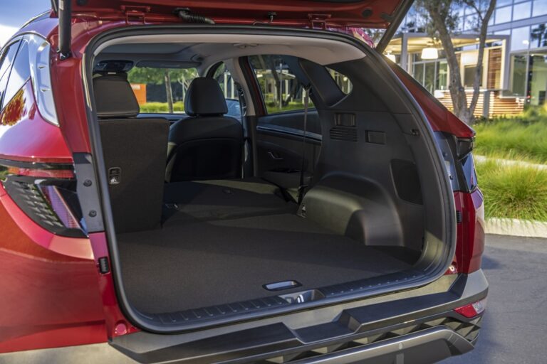 Te funkcje tworzą nowoczesną, świeżą i ekscytującą atmosferę, z materiałami wyściełającymi w miejscach o wysokim dotyku, różnymi zastosowaniami materiałowymi w zależności od częstotliwości interakcji oraz ogólną obecnością premium. Fotele w drugim rzędzie Tucson oferują funkcję składania i nurkowania, co umożliwia łatwą optymalizację konfiguracji między pasażerami a bagażem. Dla dodatkowej wygody dźwignia do tej funkcji znajduje się również w tylnej przestrzeni bagażowej.
