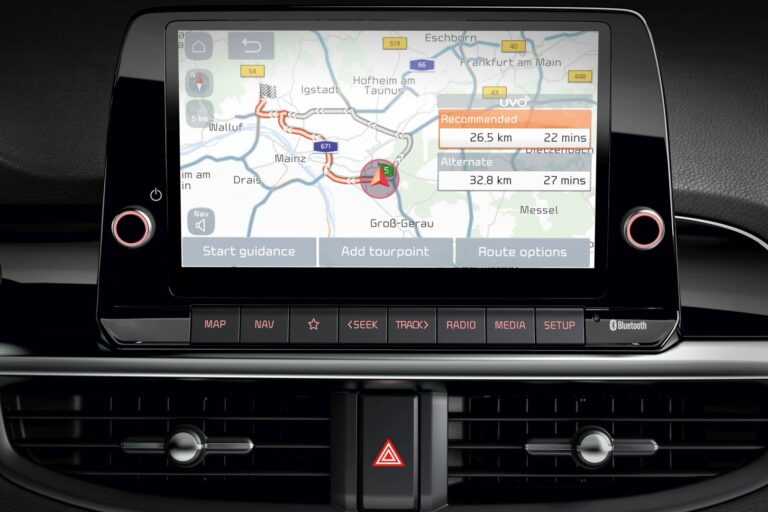 Kia Picanto wyposażone jest w większy 8-calowy 'pływający’ ekran dotykowy systemu nawigacji satelitarnej, zastępujący wcześniejszy system 7-calowy. Oferuje także funkcję Bluetooth do wielokrotnego połączenia, umożliwiającą użytkownikom sparowanie do dwóch urządzeń mobilnych w tym samym czasie – jedno do korzystania z telefonu w trybie głośnomówiącym, a drugie tylko do mediów. System standardowo obsługuje Apple CarPlay™ i Android Auto™.