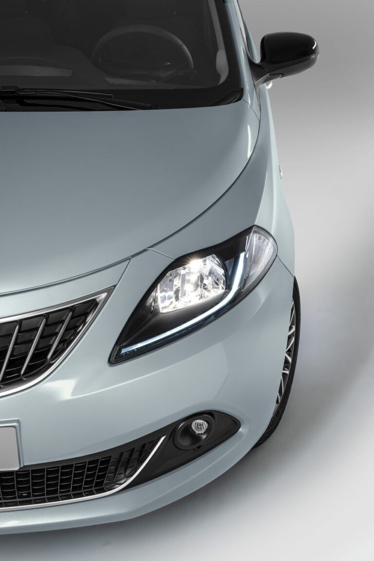 Kiedy producent zaprezentował model z 2015 roku, zrezygnował z chromowanych poziomych żaluzji. Siedem lat później jednak styliści marki rozważali ich ponowne wprowadzenie, tym razem montując je pionowo, jak to miało miejsce w trzeciej generacji Ypsilon. Dodatkowo, otaczał je błyszczący detailing, a reflektory miały światła dzienne, które je podkreślały. Niżej, na zderzaku, Lancia stworzyła nowy projekt dolnego wlotu powietrza, ozdabiając go chromowaną listwą.