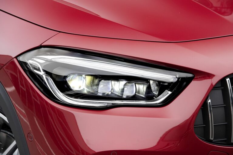 Design GLA35 oparty jest na linii AMG, ale również wyraźnie podkreśla przynależność do rodziny AMG. Specjalny grill AMG podkreśla przynależność modelu do rodziny AMG. Inne cechy rozpoznawcze to wykończenie lamel w zewnętrznych wlotach powietrza oraz przedni splitter w srebrnym chromie, a opcjonalnie w wysokim połysku czarnym. Przyciągające wzrok elementy widoczne z boku to 19-calowe lekkie felgi w kolorze szaro-tantalowym z wysokim połyskiem (inne wzory dostępne opcjonalnie w rozmiarach 19, 20 lub 21 cali) oraz panele drzwiowe z wstawkami w srebrnym chromie lub wysokim połysku czarnym (opcjonalnie). Tylny widok dominuje wyrazista tylna osłona z nowym wlotem dyfuzora, AMG spoiler na dachu i dwie okrągłe końcówki wydechu po lewej i prawej stronie. Smukłe, dwuczęściowe tylne lampy nadają tyłowi GLA wrażenie szerokości. Pakiet AMG Night z elementami w wysokim połysku czarnym, przyciemnionymi szybami od słupka B do tyłu oraz czarnymi, chromowanymi końcówkami wydechu zapewnia jeszcze bardziej indywidualny wygląd.
