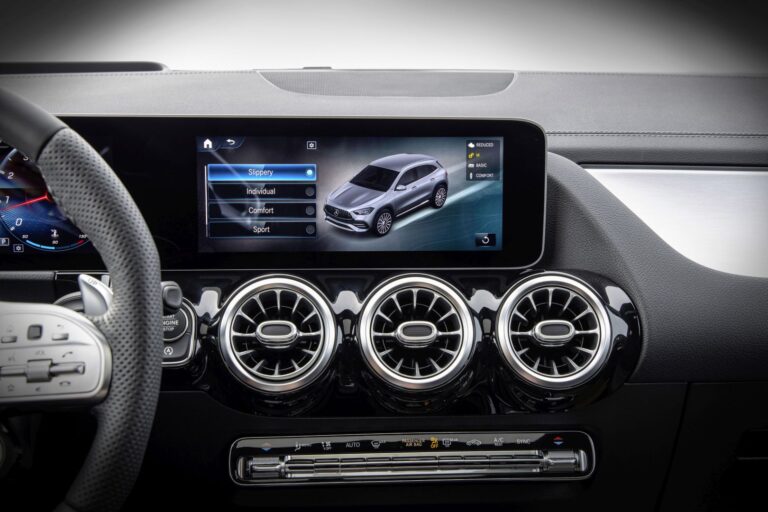 „Advanced” aktywowane jest w programach „Sport” i „Sport+”. GLA35 4MATIC pozostaje neutralnie zrównoważony. Niższe tłumienie przechyłów, niższe wymagania kątowe i zwiększona zwinność wspierają dynamiczne manewry, takie jak jazda po krętych wiejskich drogach.
