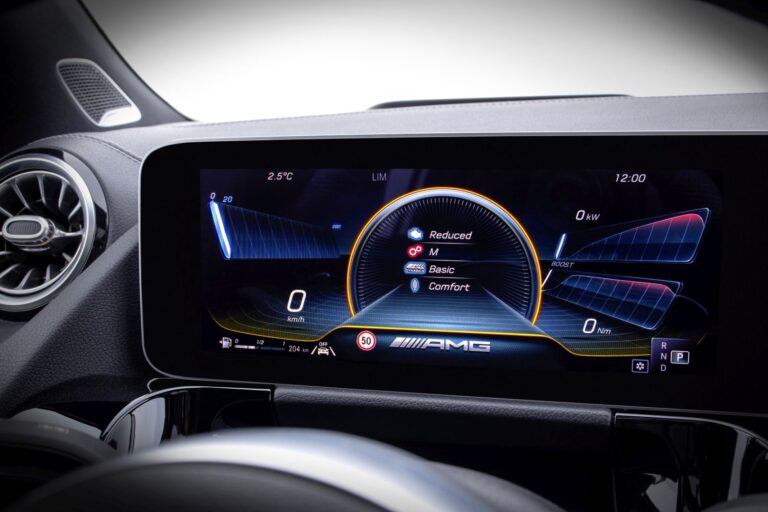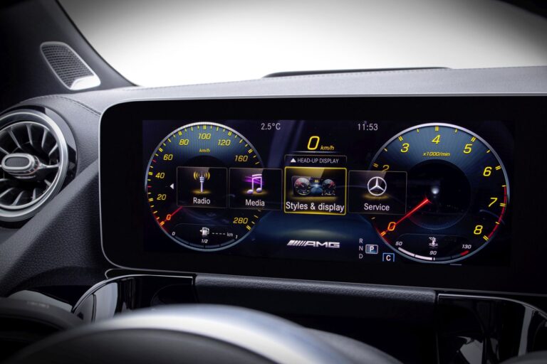 Klient ma do wyboru trzy style wyświetlania AMG w zestawie wskaźników: „Classic”, „Sport” i „Supersport”. Tryb „Supersport” wyróżnia się centralnym, okrągłym obrotomierzem oraz dodatkowymi informacjami prezentowanymi w postaci słupków po lewej i prawej stronie obrotomierza: z perspektywy trójwymiarowej sięgają głęboko w tło do sztucznego horyzontu. Za pomocą menu AMG kierowca może wywołać różne specjalne wyświetlacze, takie jak rozgrzewanie, nastawienie, G-Force oraz dane silnika. Dzięki indywidualnym wyświetlaczom AMG, takim jak wizualizacja trybów jazdy czy dane telemetrii, dotykowy wyświetlacz multimedialny podkreśla również dynamiczną konfigurację.