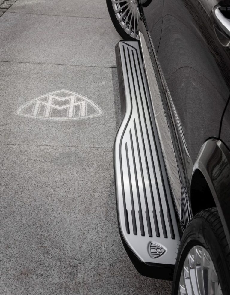 Panele progowe są więcej niż tylko dekoracją. Zawierają one próg, który automatycznie wysuwa się dla pasażerów wchodzących do pojazdu. Wykonane z wysokopolerowanego aluminium z antypoślizgowymi paskami gumowymi, dłuższe niż dwa metry progi nie tylko umożliwiają wygodny dostęp dla kierowców i pasażerów Mercedes-Maybach, ale także zapewniają niezwykłe widowisko za każdym razem (szczegóły w następnym rozdziale).
