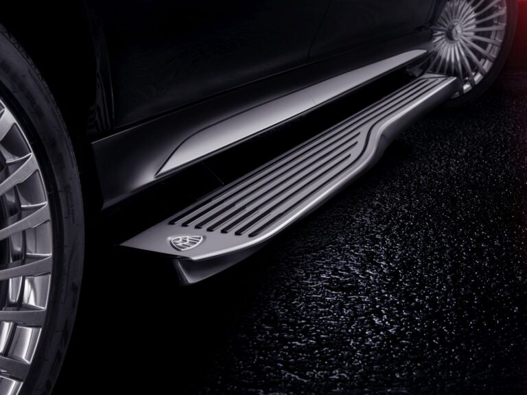 Jednym z wyróżniających elementów Mercedes-Maybach GLS są elektrycznie wysuwane progi. Ułatwiają one dostęp i wysiadanie z podwyższonej pozycji siedzącej, a także zapewniają eleganckie widowisko.