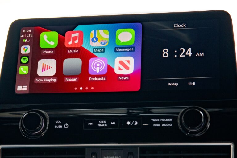 Standardowe łączność ze smartfonem obejmuje bezprzewodowy Apple CarPlay® oraz przewodowy Android Auto™. Dostępne bezprzewodowe ładowanie smartfona uruchamia się natychmiast po odłożeniu telefonu, a wskaźnik ładowania pokazuje status. Każda Armada z 2021 roku może również aktualizować dane mapowe i oprogramowanie za pośrednictwem wbudowanego Wi-Fi.