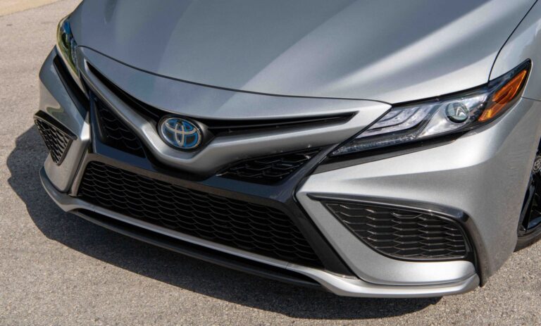 Odważny wygląd z przodu wyróżnia wersje LE i XLE, które są nastawione na komfort, od sportowych wersji SE i XSE w 2022 roku. Przedni zderzak modeli Camry LE i XLE wyróżnia się bardziej wyraźnym dolnym wlotem powietrza. Wersja gazowa LE ma także 17-calowe felgi aluminiowe, podczas gdy XLE posiada 18-calowe. Wersje SE i XSE podkreślają odważniejszy kształt dolnego zderzaka z kratką w stylu plastra miodu i wlotami powietrza, a także akcentami bocznymi. W modelach hybrydowych oznaczenie Toyota Hybrid będzie zamieszczone tylko na klapie bagażnika.