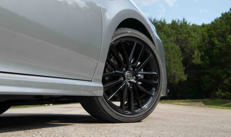 Transformacja do AWD dodaje tylko 165 funtów (wersja LE; inne wagi mogą się różnić) w porównaniu do wersji FWD. Ustawienia zawieszenia, felg i opon, które wyróżniają poszczególne modele Camry, są zachowane w wersjach AWD. To oznacza, że na przykład wersja Camry XSE ma te same sportowe zawieszenie i 19-calowe felgi zarówno w wersji FWD, jak i AWD.
