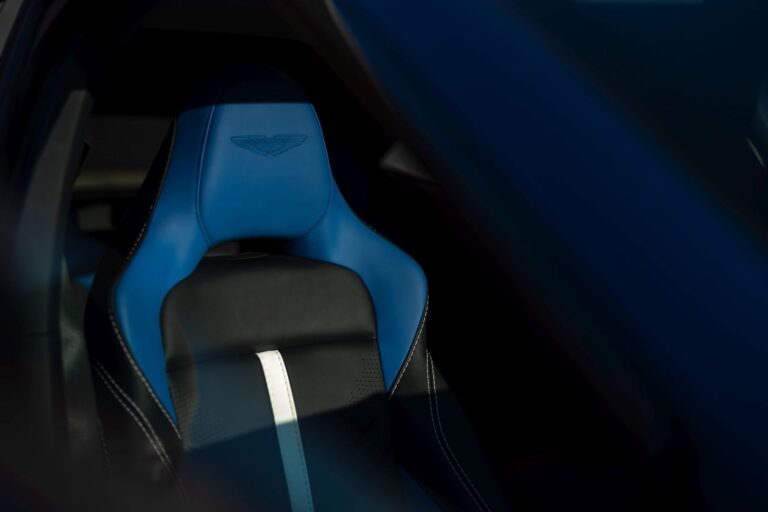 Sportowy temat kontynuuje się wewnątrz, z standardowymi fotelami sportowymi (fotele komfortowe są dostępne jako bezpłatna opcja). Wszystkie opcje siedzeń oferują 16-stopniową elektryczną regulację oraz podgrzewanie z przodu i z tyłu jako standard. Oferowane są trzy opcje wnętrza – podstawowe Accelerate, które charakteryzuje się połączeniem skóry i Alcantary®, oraz opcjonalne Inspire – Comfort i Inspire Sport, które oferują pełną skórę Semi-Aniline z wyhaftowanymi skrzydłami Aston Martin na oparciu głowy, kontrastowym paskiem na środku siedziska oraz wzorem perforacji na oparciu siedziska i poduszce.