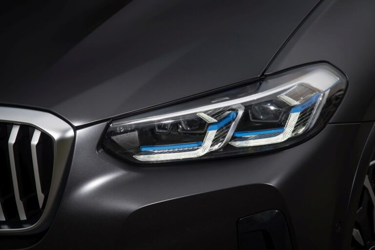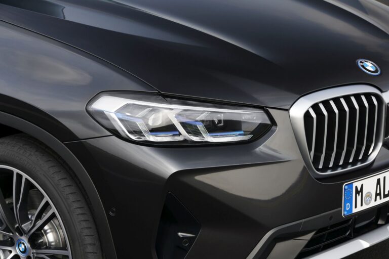 Dzięki przeprojektowanej kratce chłodnicy BMW, reflektorom o około dziesięć milimetrów płytszym oraz nowemu przedniemu zderzakowi, BMW X3 wygląda prawie jak nowe auto. Kratka chłodnicy, bardziej wyrazista, zwłaszcza w górnej części, jest większa niż wcześniej i teraz składa się z jednolitej ramy. Czarna belka, w której umieszczony jest iCam, jeżeli jest zamontowany, zapewnia wizualne oddzielenie kratki. Przednie reflektory standardowo wyposażone są w pełną technologię LED. Oprócz opcjonalnych reflektorów LED adaptacyjnych z funkcją matrycową, gdzie światło w trudnych warunkach pogodowych pełni rolę wcześniej oddzielnych świateł przeciwmgielnych, dostępne jest również BMW Laser Light z zasięgiem do 650 metrów jako opcjonalny dodatek.