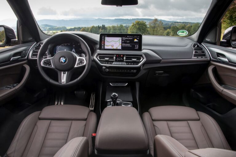Nowe BMW X3 i nowe BMW X4 przejmują konsolę centralną z aktualnej serii BMW 4. Wystarczająca, centralna tablica kontrolna z funkcją dotykową ma teraz standardowo przekątną ekranu wynoszącą 10,25 cala we wszystkich pojazdach. Opcjonalnie dostępna jest również wersja 12,3 cala. Znacznie poprawione standardowe wyposażenie obejmuje teraz sportowe fotele z pokrowcami z nowej generacji Sensatec w nowym wzorze Ray oraz automatyczną klimatyzację z 3-strefową kontrolą. Aby uprościć proces konfiguracji pojazdu dla klientów, a zwłaszcza zredukować liczbę konfliktów, złożoność linii wyposażenia i opcji została celowo zredukowana o 30 procent. Oprócz uchwytu na kubki i emblematu specyficznego dla modelu, konsola centralna zawiera nowo zaprojektowaną wyspę sterującą z dźwignią zmiany biegów, przyciskami systemu start/stop, elektryczną hamulcem postojowym, kontrolą zjazdu ze wzniesienia oraz różnymi funkcjami doświadczenia jazdy oraz kontrolerem BMW. Przyciski uruchamiania silnika znajdują się również w tym miejscu. Nowe, elektroplaterowane elementy wykończeniowe na nawiewach dodają elegancji, podkreślając jednocześnie poziome linie we wnętrzu. Dodatkowe funkcje oferowane są przez opcjonalne dodatkowe Ambient Light, które zawiera podświetlenie konturu nad dekoracyjnym wykończeniem w desce rozdzielczej oraz podświetlenie, które łagodnie świeci w dół poniżej akcentu, tworząc szczególnie wysokiej jakości, relaksującą atmosferę we wnętrzu.
