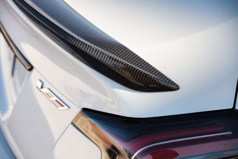 Mówi się, żeby nie oceniać książki po okładce, ale CT5-Blackwing mówi wiele o sobie. Jego reflektory wyglądały, jakby pochodziły ze świata Marvela. Szeroki grill z siatką był uzupełniony niższym w zderzaku, a dwa pionowe paski LED przypominały dwa dagi z cichego zabójcy. Zespół projektowy dodał więcej pikanterii z tyłu, w tym spojler z włókna węglowego na klapie bagażnika oraz wieloszczelinowy dyfuzor, który skrywał cztery kwadratowe rury wydechowe.