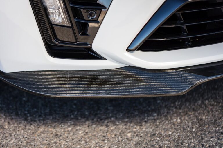 Przedni splitter, który zmniejsza unoszenie, aby pomóc utrzymać samochód przy ziemi podczas szybkiego pokonywania zakrętów