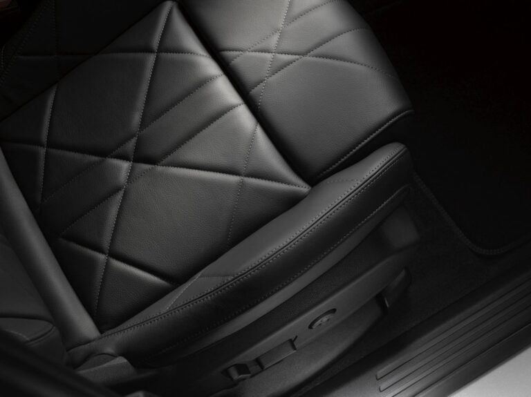 Finezja występuje również w wnętrzu RIVOLI, które wprowadza czarny bazaltowy kolor oraz pikowane wykończenie z połączoną tapicerką ze skóry Claudia, która ma bardziej wyraźny wzór.