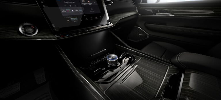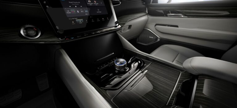Wagoneer posiada jednoczęściowy panel instrumentów, podkreślający wspaniałość wnętrza, podczas gdy Grand Wagoneer cechuje się dwu-elementowym projektem, z opcjonalnym Piano Black mid-bolster, który elegancko integruje zaawansowaną technologię i łączność. Piano Black mid-bolster zdaje się unosić nad strukturalnym skrzydłem wykonanym z aluminium i otula rzeźbione drewno z amerykańskiego orzecha satynowego z wbudowanym napisem „Grand Wagoneer” w metalu po stronie pasażera panelu instrumentów. Aluminium zostało również wybrane jako kluczowy materiał do tworzenia głośników drzwiowych i otoczenia wlotów powietrza. Formowana aluminiowa ramka z wytłoczonym wzorem jest dostępna również w Grand Wagoneer i podkreśla ekran pasażera. Środkowy konsola wychodzi z pod strukturalnego aluminiowego skrzydła i płynnie przechodzi z dolnego panelu, dodając element płynności do przestronnej kabiny. Aluminiowy gałka zmiany biegów, z ambinetowym podświetleniem, znajduje się u podstawy konsoli środkowej i jest otoczona przełącznikami, które kontrolują systemy Selec-Terrain i wysokości zawieszenia.